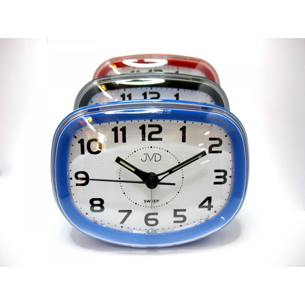 Stolní budík s tichým a plynulým chodem ručiček, různé barevné provedení