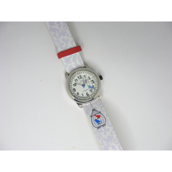 Dětské hodinky s bílým páskem a lila zdobením.Vodotěsné 50 M.