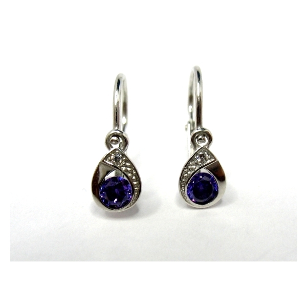 Dětské náušnice z bílého zlata s modrofialovým kamínkem