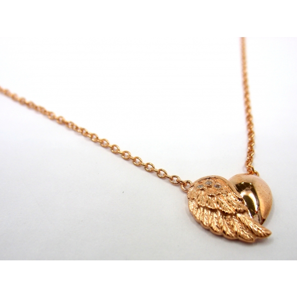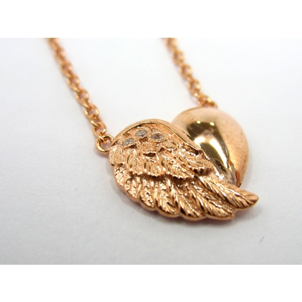 Originální náhrdelník pro ženy od značky Engelsrufer ,vyroben ze stříbra ,pozlacen 18 karátovým růžovým zlatem,přívěsek ve tvaru srdce s andělským křídlem srdce nám připomíná všudypřítomnou lásku a soucit, ve spojení s křídlem udržuje kontakt s naším andělem strážným, který nad námi bdí ve dne i v noci. Přívěšek osázený zirkony ozdobte svůj dekolt šperkem, který nikdo nepřehlédne.