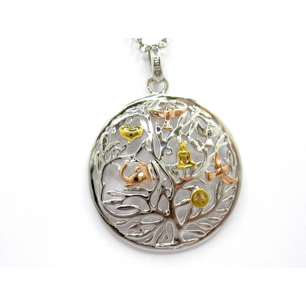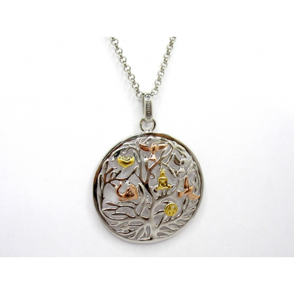 Originální náhrdelník pro ženy od značky Engelsrufer, strom života se zlacením 18k zlata vyroben ze stříbra 925/1000, přívěsek v podobě kruhu je protkaný detailně propracovanými větvemi a listy, na větvích uvnitř přívěsku naleznete symboly lásky, harmonie a prosperity v barvě žlutého a růžového zlata ozdobte se šperkem, který nikdo nepřehlédne.