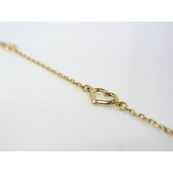 Jemný náramek se čtyřmi srdíčky v délce 17-19 cm.