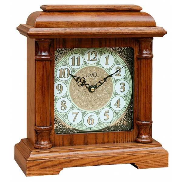 Hodiny značky JVD v barvě ořechu, bateriové z melodií.