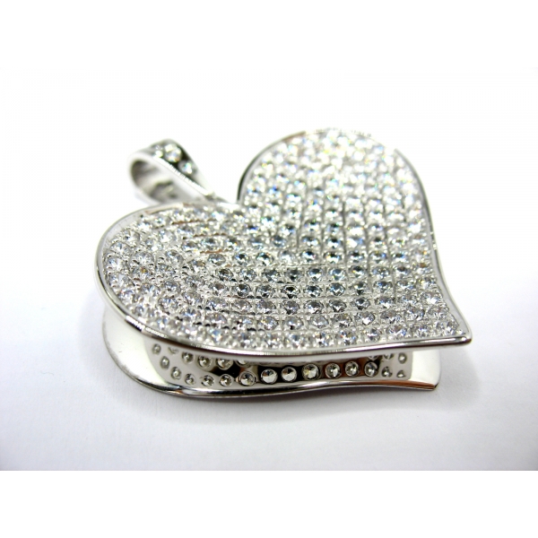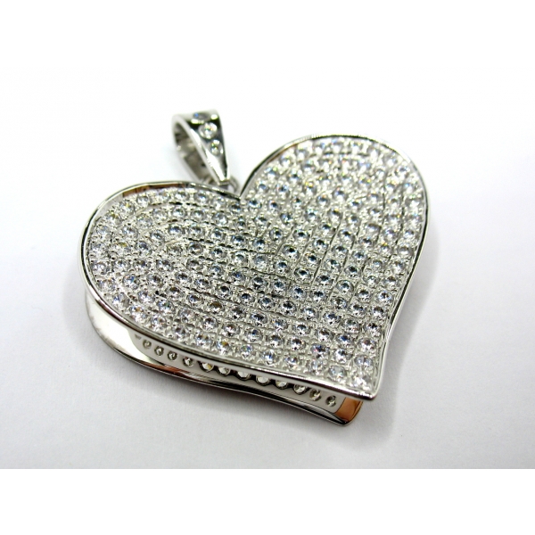Luxusní srdce z bílého 14 k zlata se zirkony, speciální ruční práce, dvojité