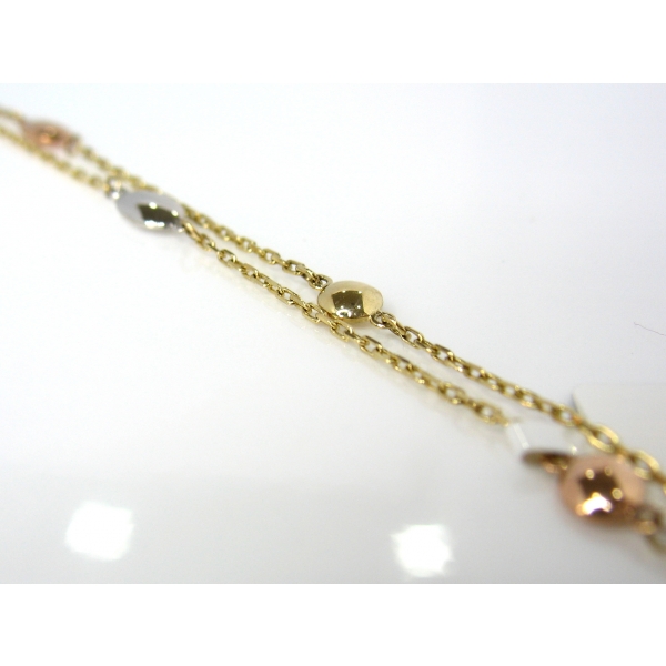 Dvojitý tříbarevný náramek v délce 18 cm.