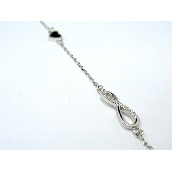 Stříbrný náramek se symbolem nekonečno a černým srdíčkem