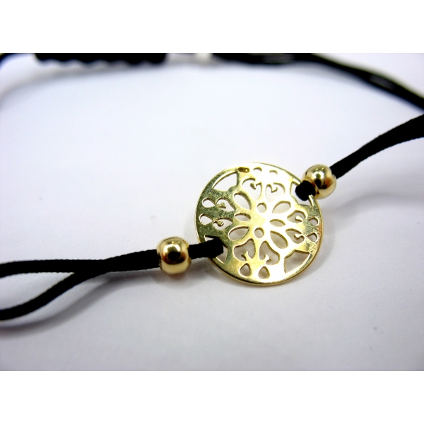 Náramek s černou šňůrkou , přívěšek MANDALA vyrobený ze 14kt zlata