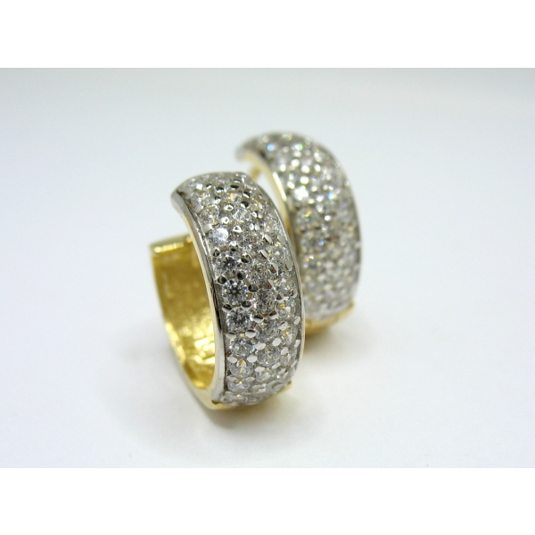 Náušnice kruhy se zirkony . Z jedné strany bílé se zirkony a z druhé strany žluté hladké.Průměr náušnic 1,6 cm.Momentálně nejsou skladem-v nabídce najdete jiné podobné.