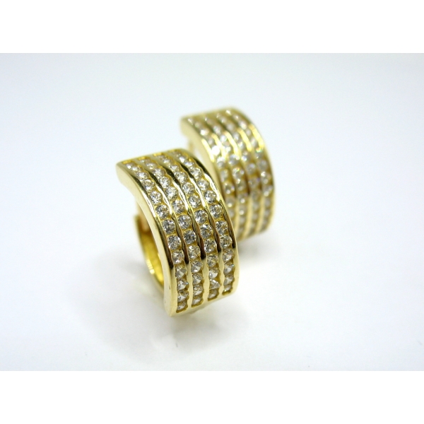 Zlaté náušnice kruhy se zirkony.Průměr náušnic 1,4 cm.