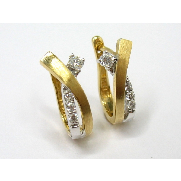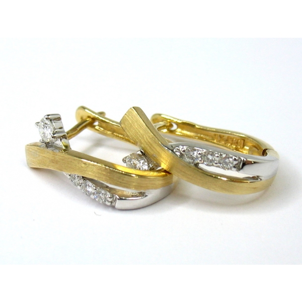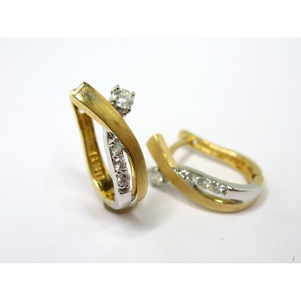 Brilianty vkusně vsazené do náušnic ze žlutobílého zlata. Tento šperk je možné doplnit přívěškem. Jemné a velmi hezké náušničky na praktické francouzské zapínání.