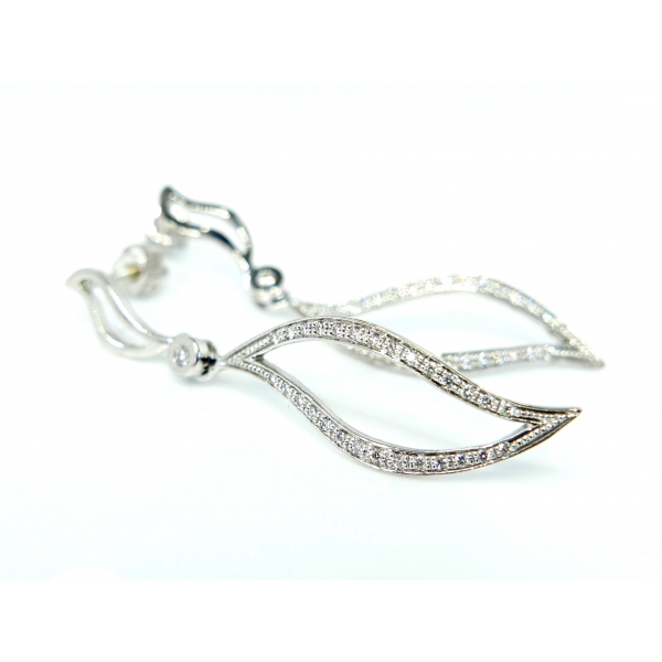Visací delší náušničky na šroubek vyrobené z bílého zlata, bohatě zdobené brilianty