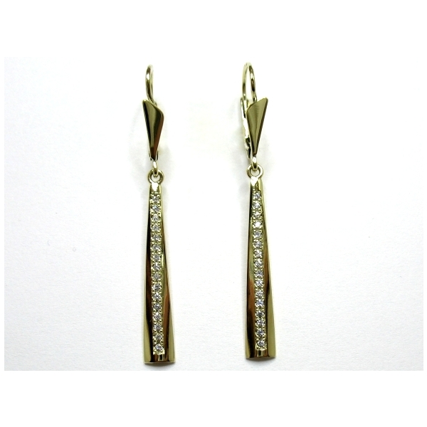 Náušnice vyrobené ze zlata posázené zirkony, lze vyrobit v různých délkách a také lze vyrobit i s brilianty (vyšší cena)
