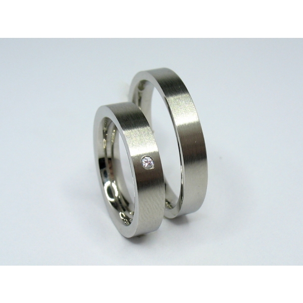 Snubní prsteny z chirurgické oceli s matováním , rovný profil. Dámský prsten se zirkony. Možnost objednat i s brilianty