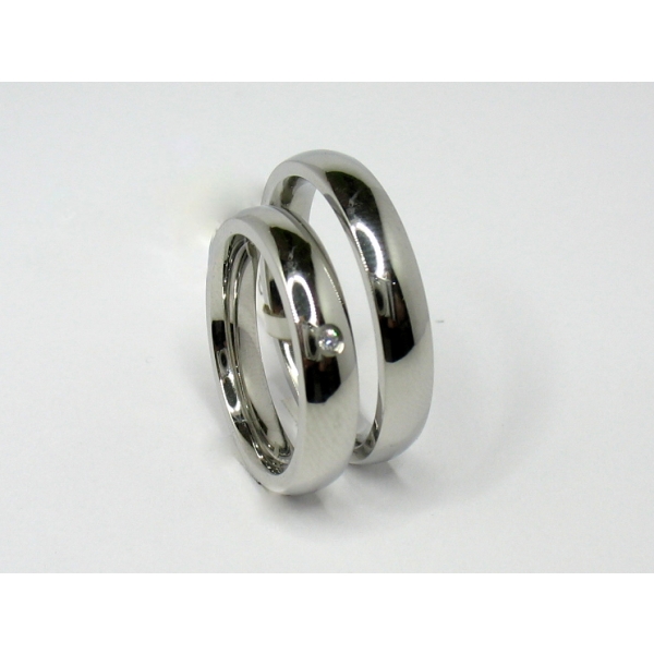 Snubní prsteny z chirurgické oceli v lesklém provedení a luxusním kulatém profilu, který na prstu krásně sedí . Dámský prsten se zirkonem. Možnost objednat i s briliantem