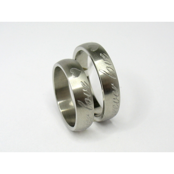 Snubní prsteny z chirurgické oceli s matováním. Rytí po obvodu " forever love" krásně zdobí prsteny, Možnost rytí i vlastního textu