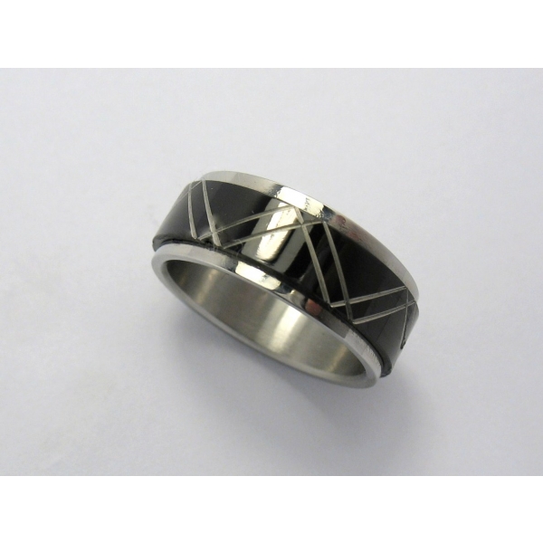 Pánský prsten z chirurgické oceli zdobený černým smaltem.