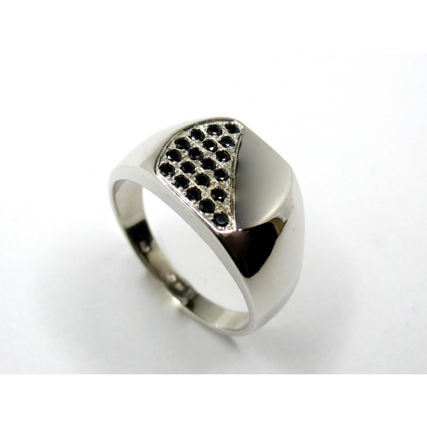 Luxusní pánský prsten z bílého zlata posázený černými zirkony