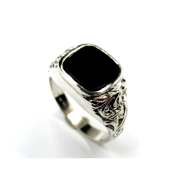 Pánský prsten z bílého zlata v luxusním provedení s onyxem