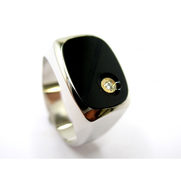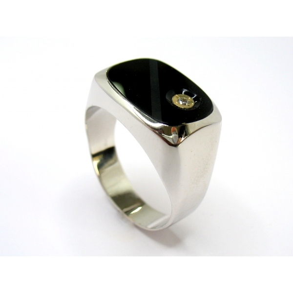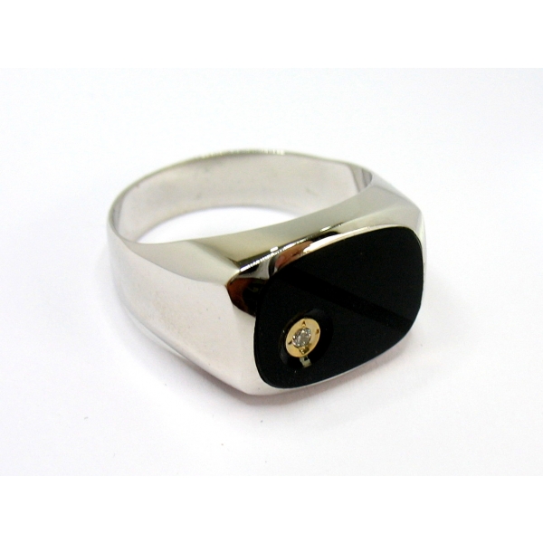 Pánský prsten z bílého zlata v luxusním provedení s onyxem