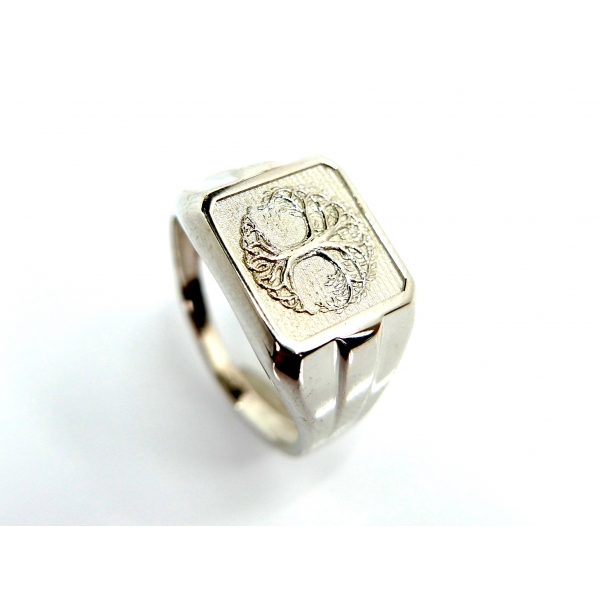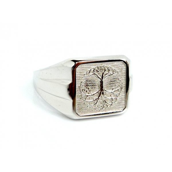 Pánský prsten vyrobený ze 14kt bílého zalata zdobený rytím -strom života
