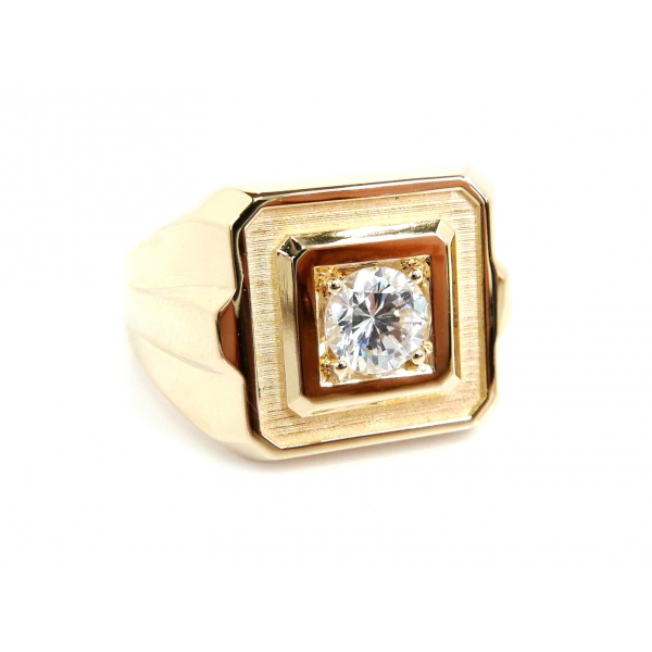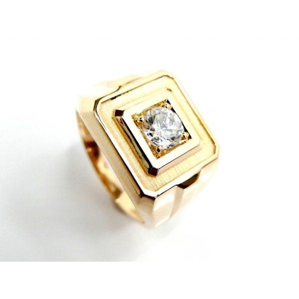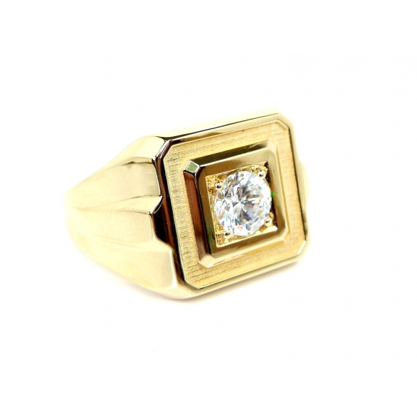 Luxusní masivní pánský prsten vyrobený ze 14kt zlata zdobený velkým středovým zirkonem