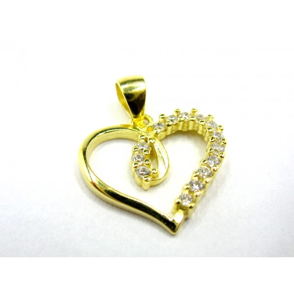 Pozlacený stříbrný přívěšek , srdce se zirkony