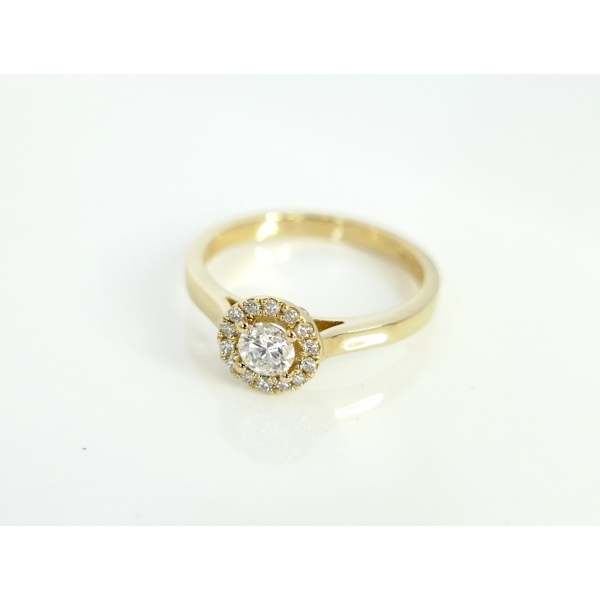 Zásnubní prsten vyrobený ze žlutého zlata osazený brilianty.