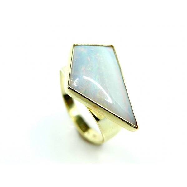 Dámský prsten vyrobený ze 14kt zlata s australským opálem ve velice jedinečném zpracování . Prsten vyráběný na zakázku podle kamene, lze vyrobit i s jinými kameny...každý kus je originál