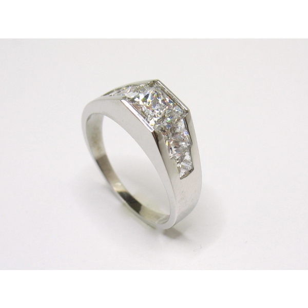 ZAJÍMAVÝ PRSTEN Z BÍLEHO ZLATA EFEKTNĚ OZDOBEN HRANATÝMI KAMENY.VELIKOST 53.