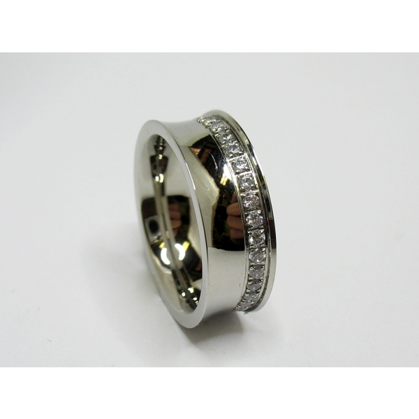 Krásný široký prsten je zdobený po celém obvodu zirkony.Je skladem ve velikostech-51,52,53,58.