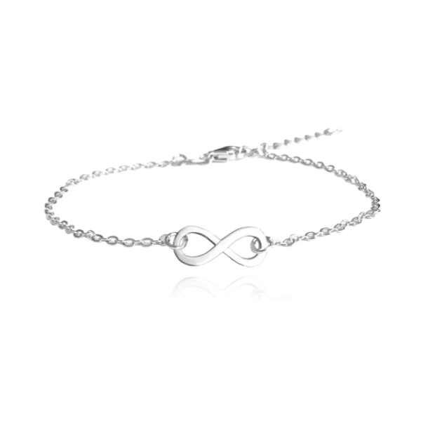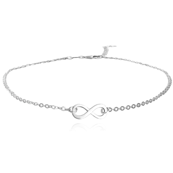 Řetízek na kotník s přívěškem nekonečno vyrobený ze stříbra v délce 24-27cm. Lze dokoupit do soupravy i náramek a náhrdelník