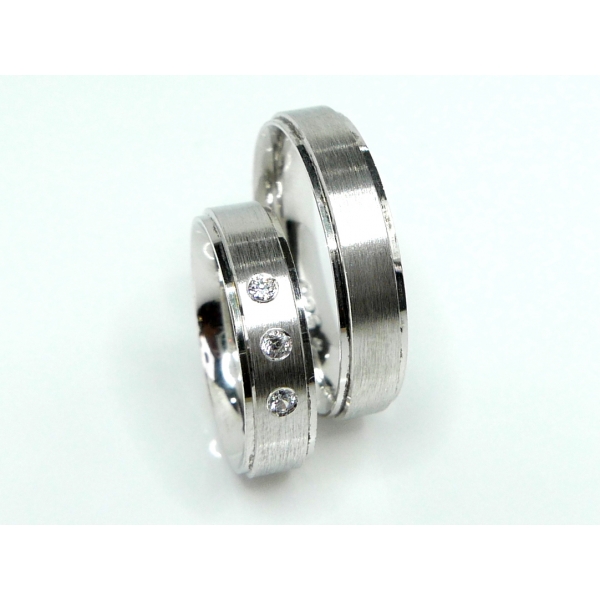 Snubní prsteny v luxusním provedení z bílého 14kt zlata . Dámský prsten se zirkony/brilianty/moissanity v ceně 22700,-