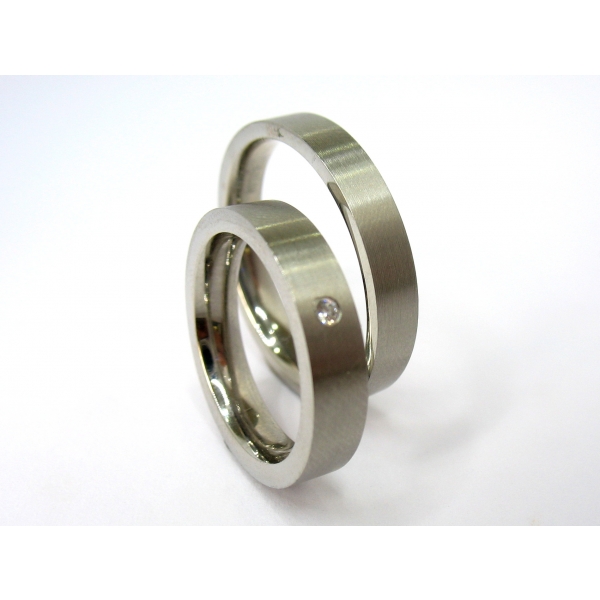 Snubní prsteny z chirurgické oceli s matováním , Dámský se zirkonem. Možnost objednat i s briliantem