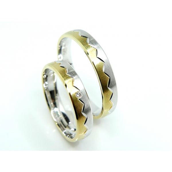 Snubní prsteny vyrobeny v kombinaci bílého a žlutého 14kt zlata . Cena s moissanity 18280,-