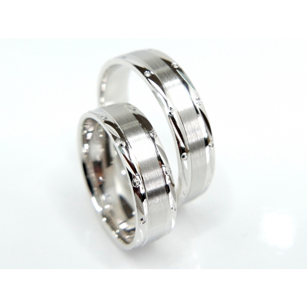 Snubní prsteny z bílého zlata s matováním a zdobením po bocích