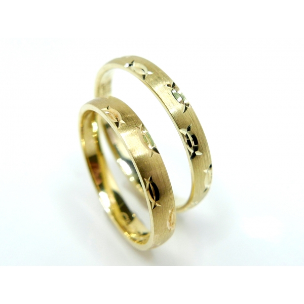Snubní prsteny vyrobené ze 14kt zlata ve žlutém provedení s matováním