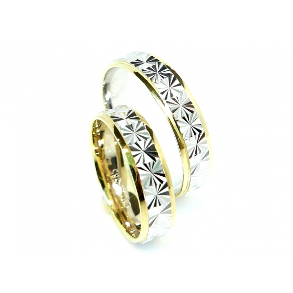 Snubní prsteny vyrobené ze stříbra , zlacené 14k zlatem , zdobené hlubokým ozdobným rytím