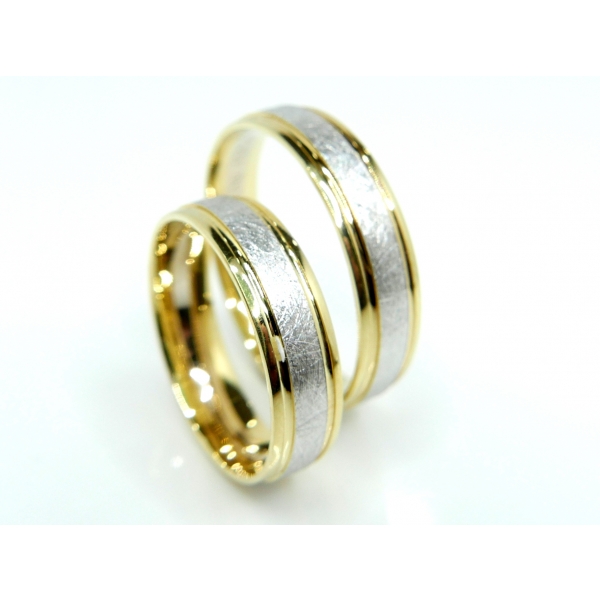 Snubní prsteny vyrobené z bílého a žlutého 14kt zlata , prsteny zdobené matováním