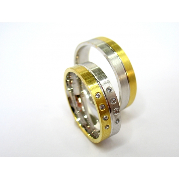 Snubní prsteny vyrobeny v kombinaci bílého a žlutého zlata