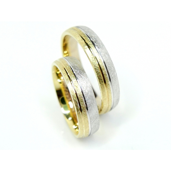 Snubní prsteny vyrobené v kombinaci z bílého a žlutého 14kt zlata. Prsteny lze vyrobit v různých barevných kombinacích