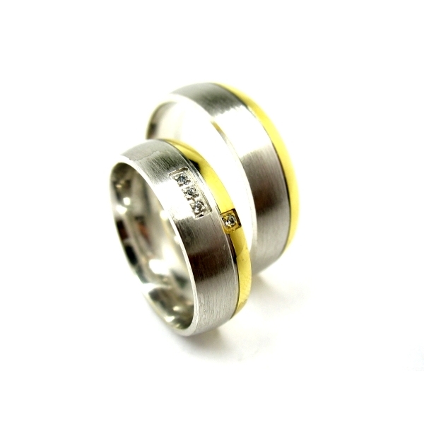 Snubní prsteny vyrobené ze stříbra , zlacené 14k zlatem , zajímavá kombinace barev