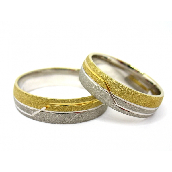 Snubní prsteny vyrobeny v kombinaci bílého a žlutého 14kt zlata