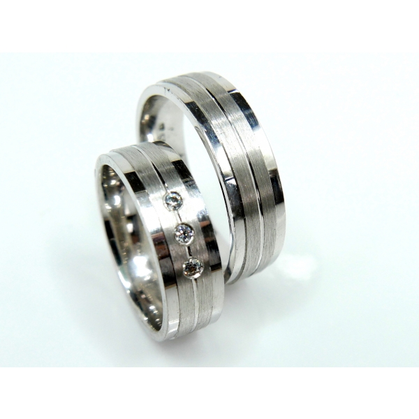 Snubní prstey vyrobené z bílého zlata , prsteny zdobené matováním, dámský prsten se zirkony/brilianty