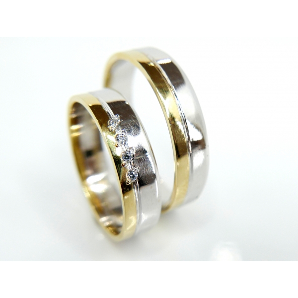 Snubní prsteny vyrobené ze 14kt kombinovaného zlata , dámský prsten zdobený zirkony/brilianty/moissanity v ceně 19900,-. Lze zhotovit v různých barevných kombinacích.
