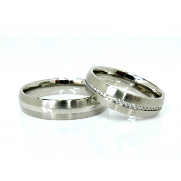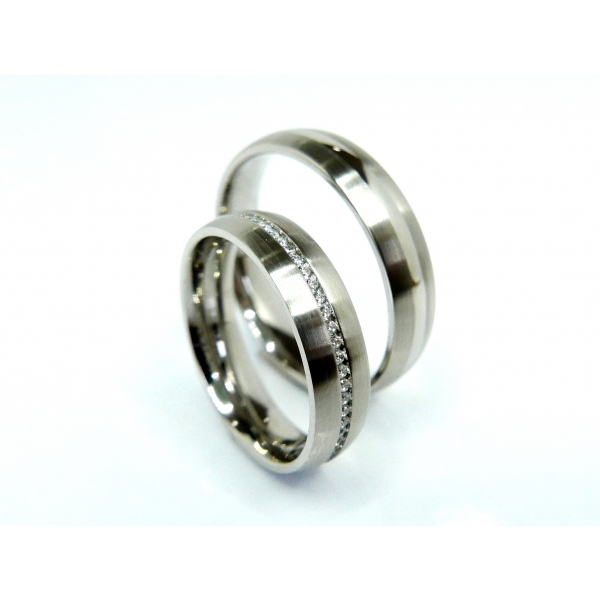 Snubní prstemy vyrobené z chirurgické oceli zdobené matováním a zirkony