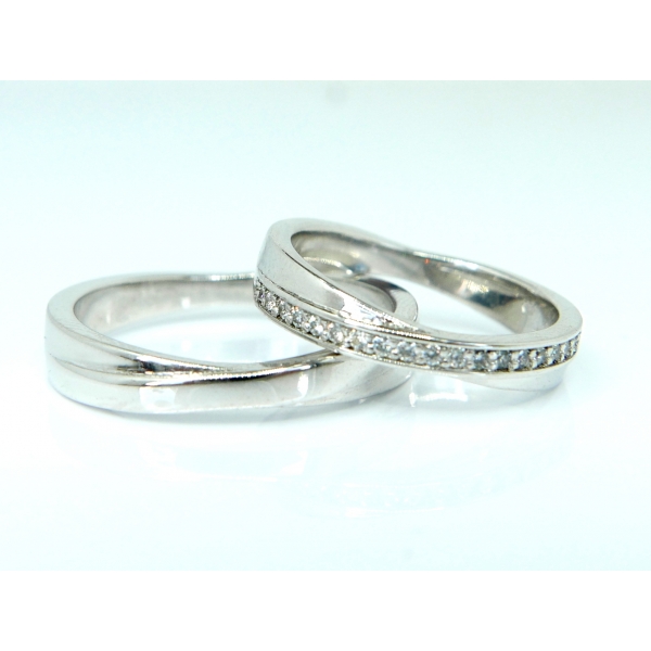 Snubní prsteny vyrobené ze 14kt bílého zlata , dámský prsten posázený zirkony/brilianty/moissanity v ceně 23900,- . Prsteny lze vyrobit ze žlutého i červeného zlata