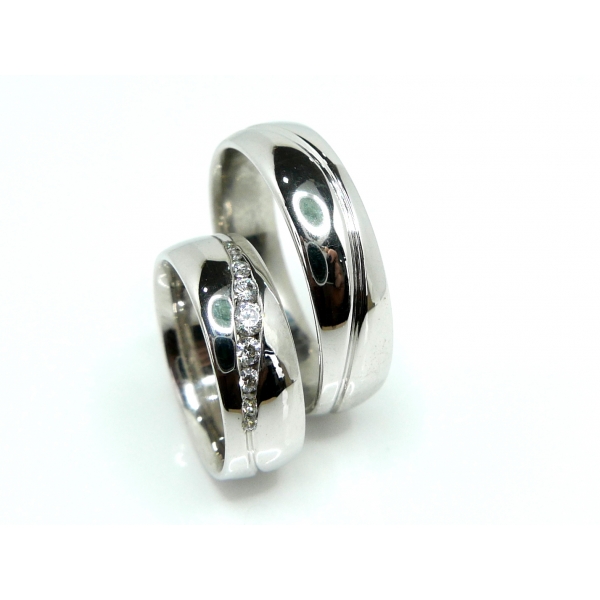 Snubní prsteny ze stříbra v luxusním provedení. Dámský se zirkony, lze vyrobit i s brilianty