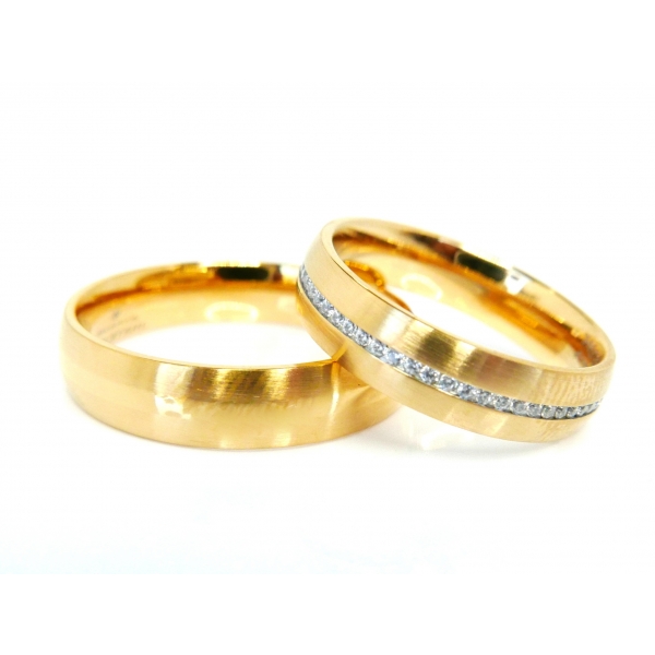 Snubní prsteny vyrobené z chirurgické oceli zlacené 14kt zlatem, dámský prsten zdobený zirkony