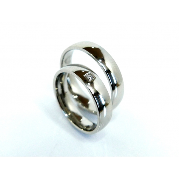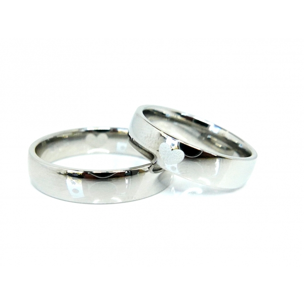 Snubní prsteny vyrobené z chirurgické oceli , dámský prsten zdobený zirkony a rytým srdíčkem u obou modelů