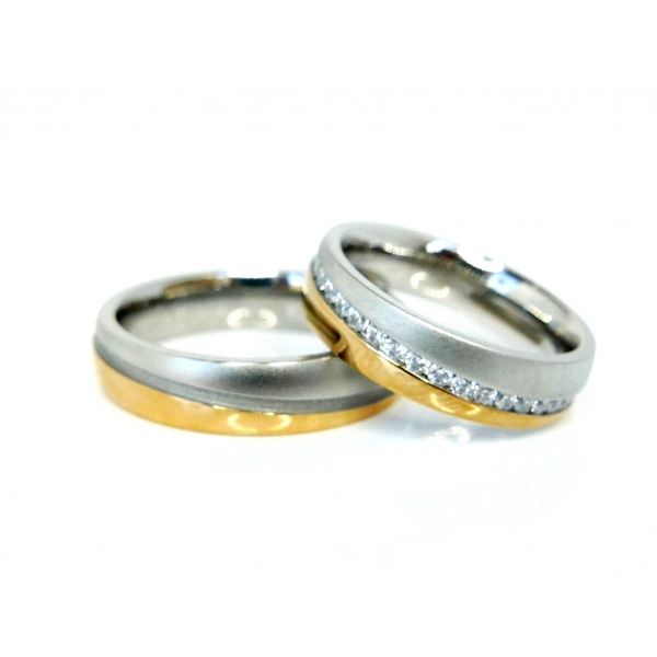 Snubní prsteny vyrobené z chirurgicé oceli zlacené 14kt zlatem, dámský prsten zdobený zirkony